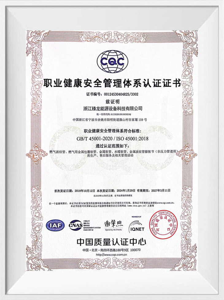 På Zhejiang Zhenlong Energy Equipment Technology Co., Ltd. , Vi är specialiserade på att tillhandahålla rostfritt stål av hög kvalitet och korrugerade slangar och beslag för gasöverföringssystem. Våra produkter är konstruerade för att uppfylla de högsta industristandarderna och erbjuder oöverträffad flexibilitet, hållbarhet och säkerhet för alla gasapplikationer.